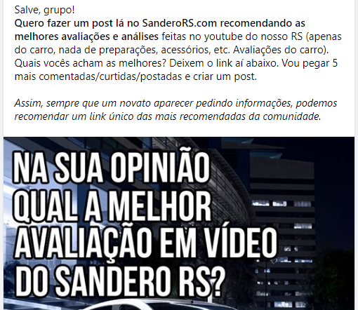 Tá pensando em comprar um RS? Perguntamos lá no grupo do Renault Sandero RS Clube quais eles consideram as melhores avaliações em vídeo do panderão. Separamos as mais votadas e citadas e juntamos aqui neste post!