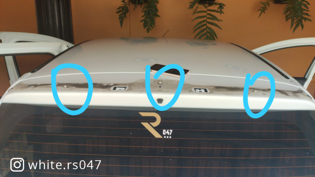Em seguida, abra a tampa do porta malas e, por dentro, remova estes dois parafusos.